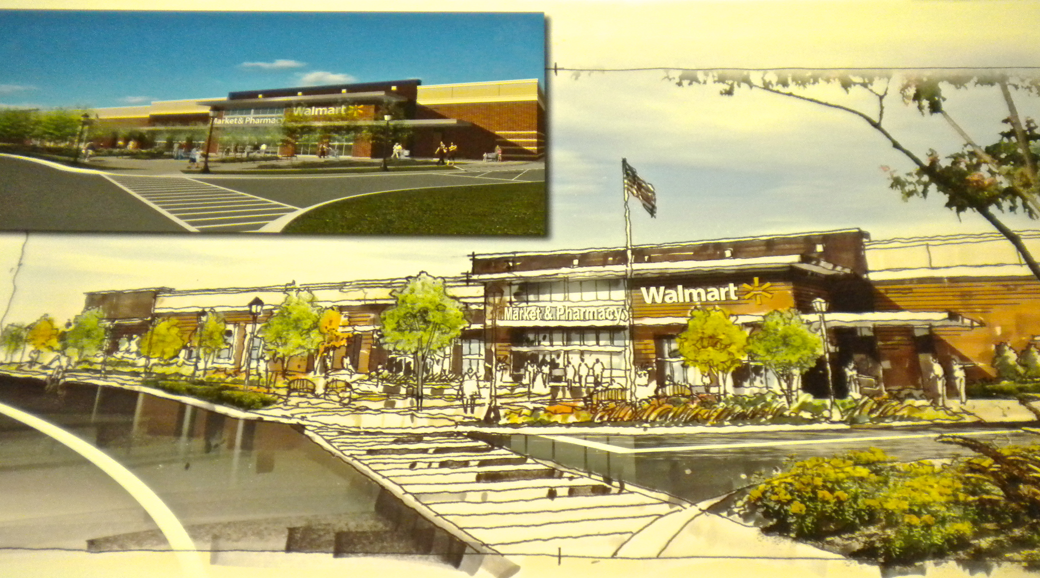 Listening to the testimony of Wal-mart’s architect at the previous hearing on March 19 was vexing. Mr. Ronis, of Perkowitz + Ruth Architects, presented a series of drawings showing how the new Wal-mart would be designed to reference the vernacular architecture of the Oxon Hill area, using the John Hanson Montessori School as it’s primary model.