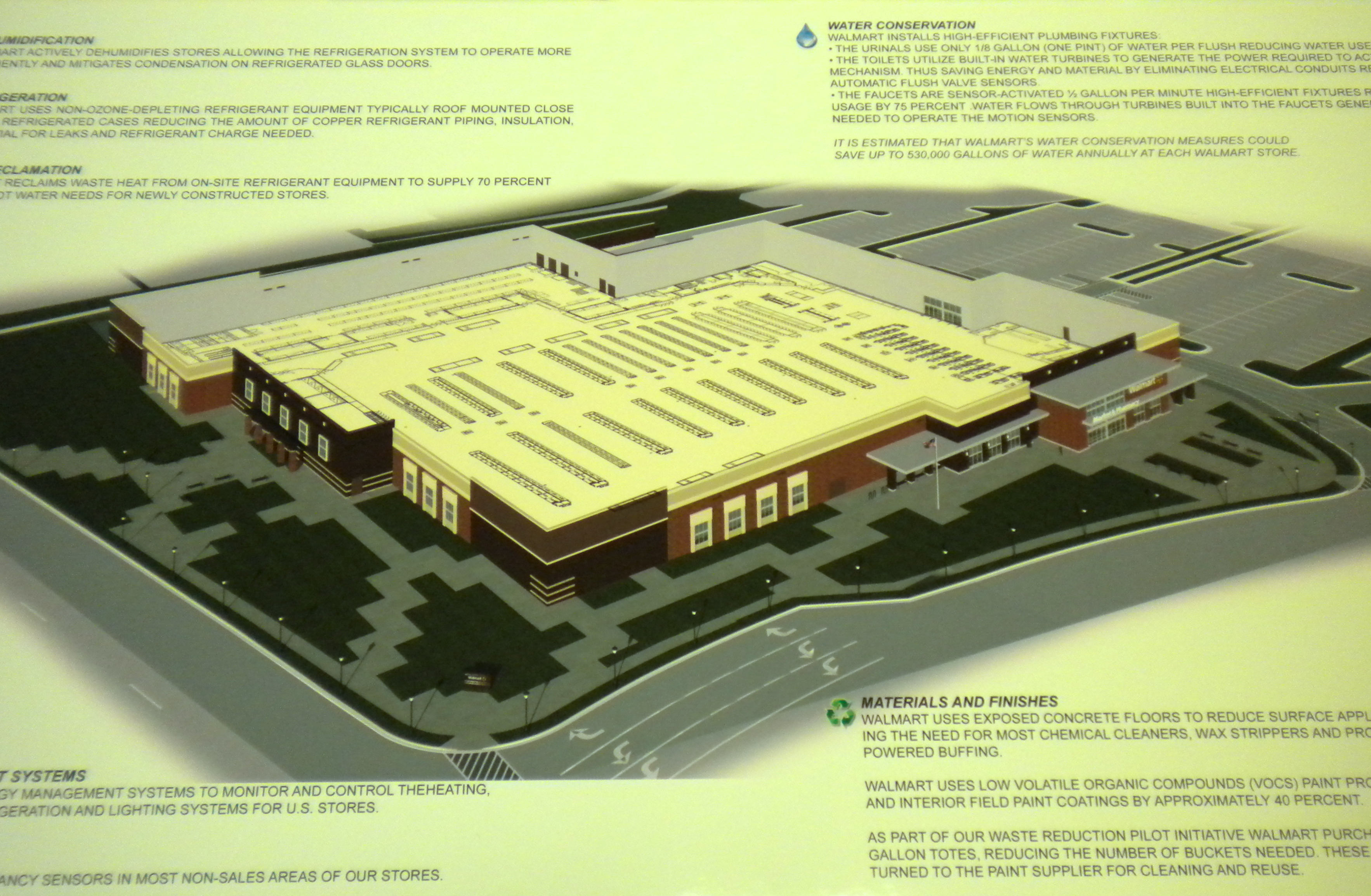 During the course of the March 19th hearing, Wal-mart was frequently referred to as a “department store.” Unlike any traditional department store with fashionably dressed window displays and multiple convenient entrances, Wal-mart, (and any big box retailer, for that matter) favors crowd control in which there is and always will be only one entrance, as their customers are simultaneously deemed potential shoplifters.