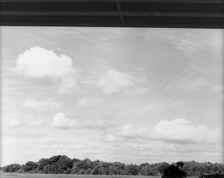 Overpass with Clouds, selenium toned gelatin silver print, 24″ x 28″