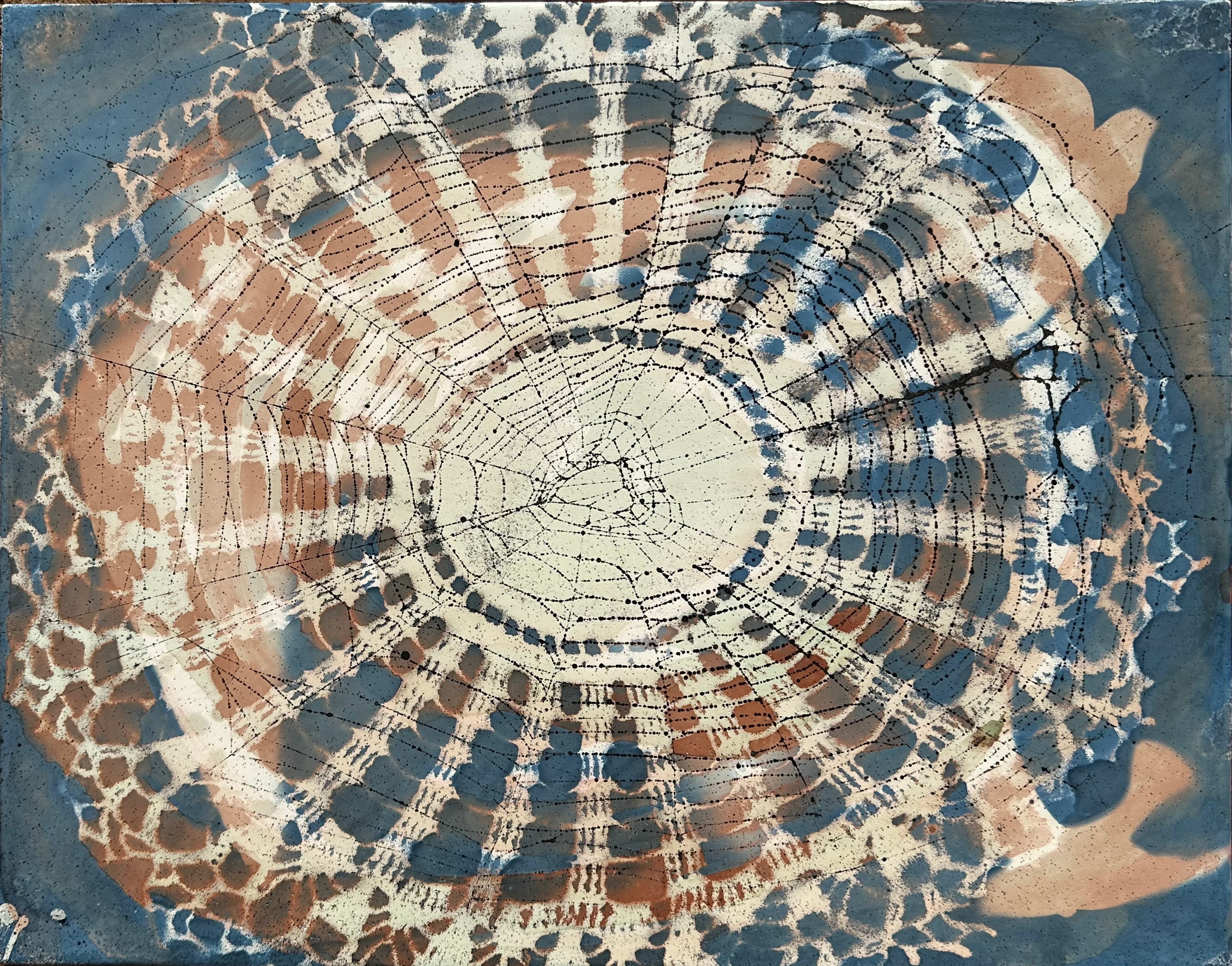Copper oxide, cyanotype, india ink on gessoed wood panel.