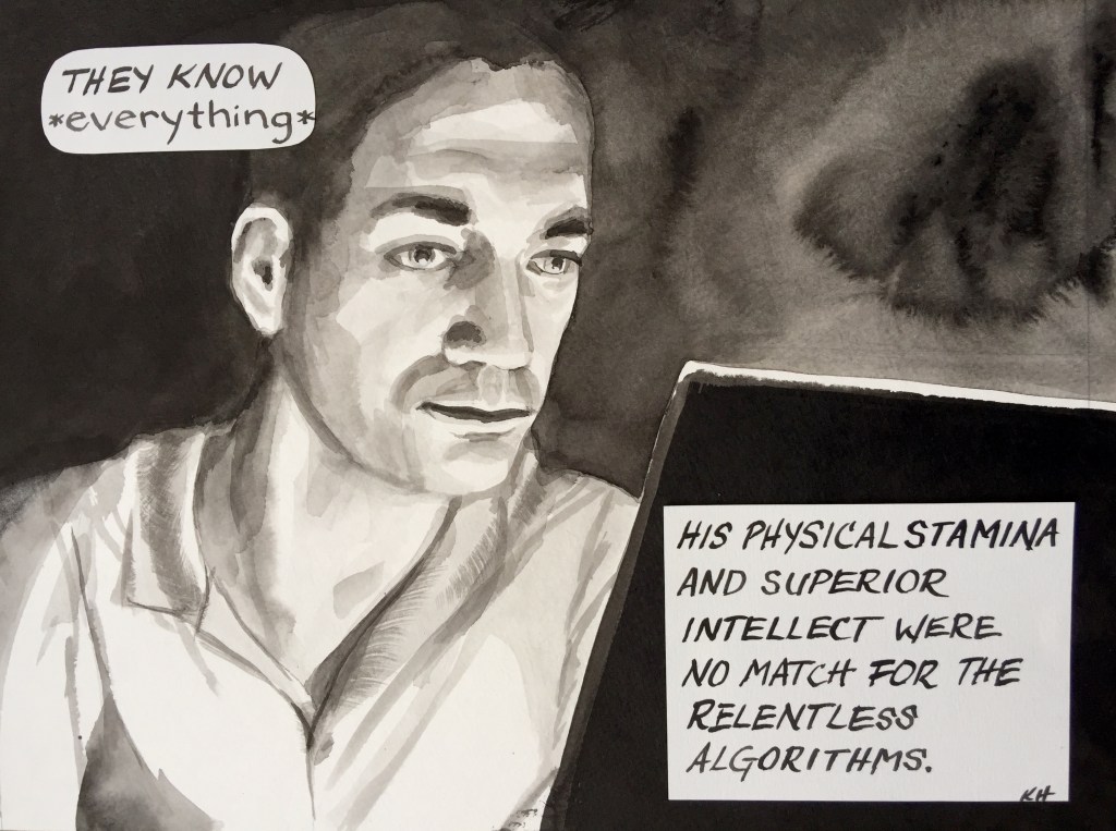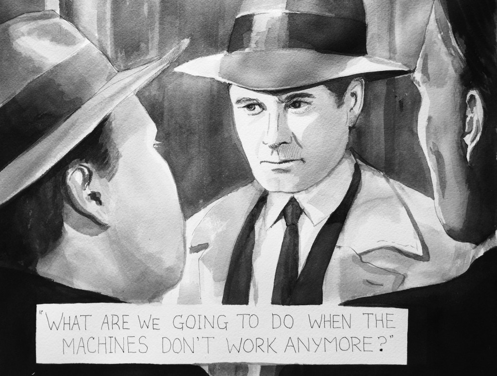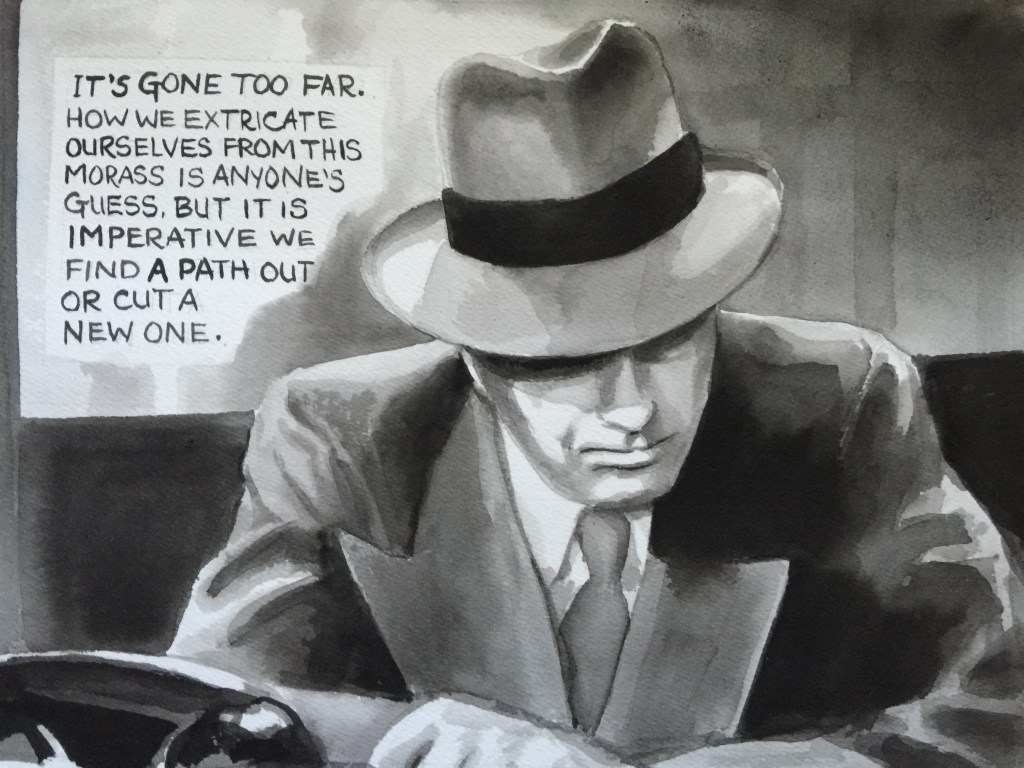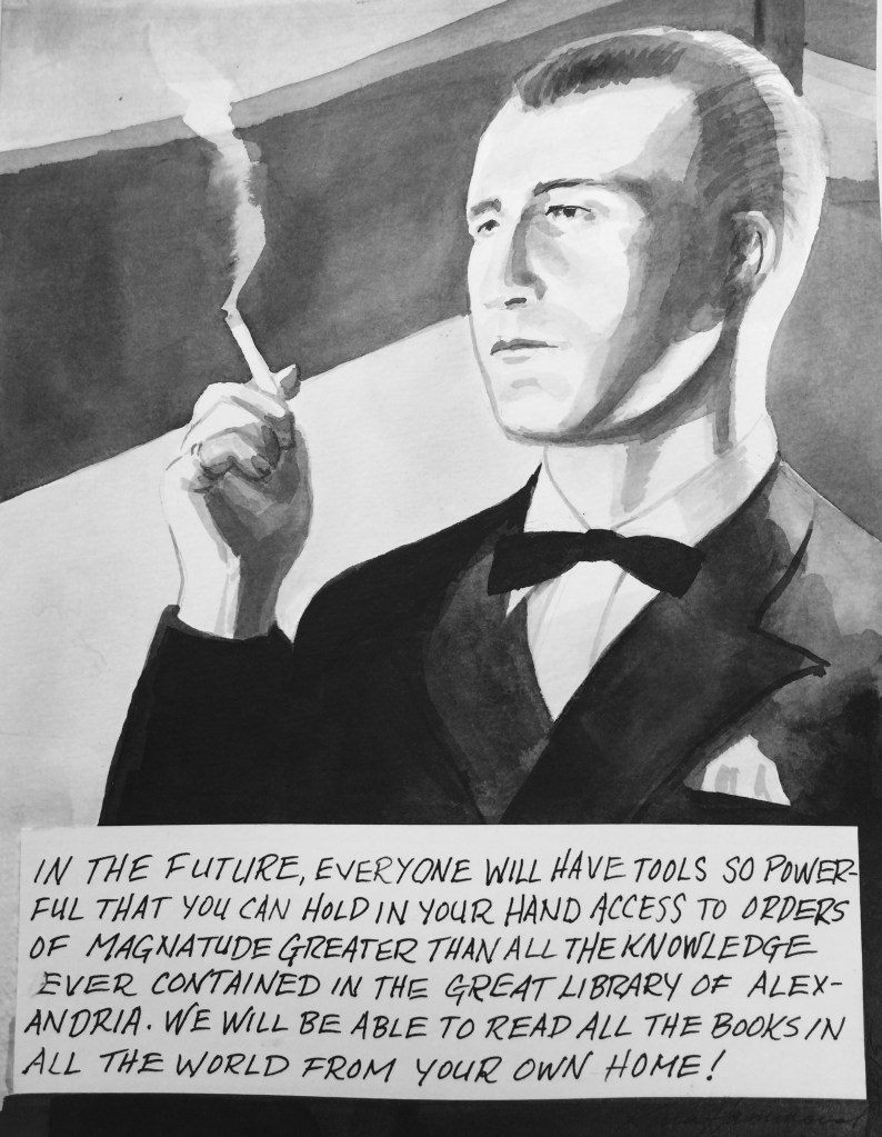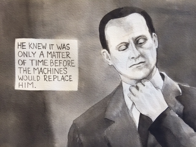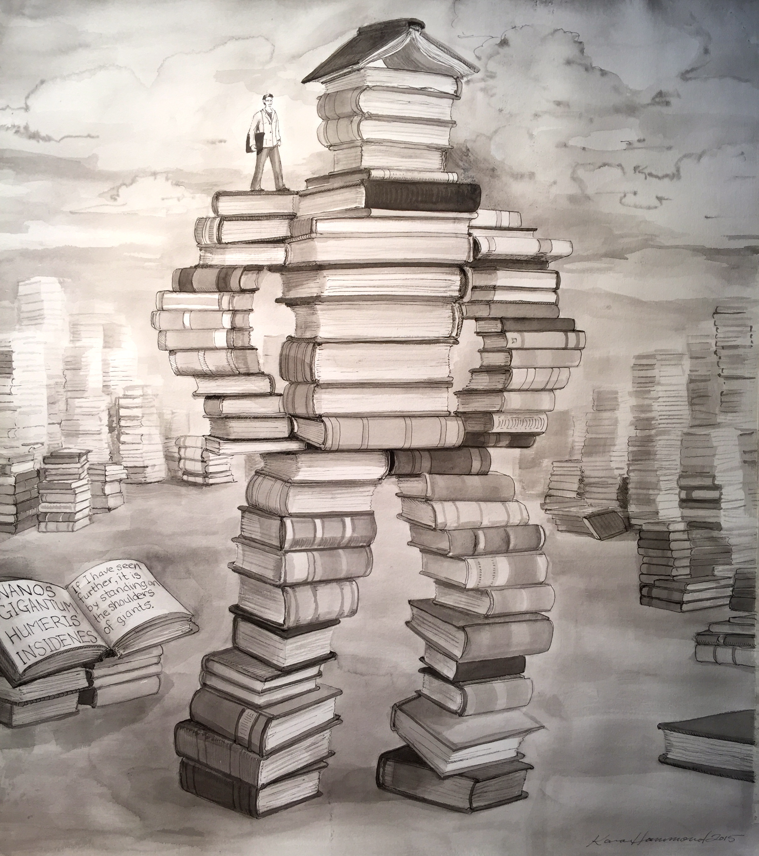 Graphic Novel Vignettes This is a series of ink wash drawings begun in 2014, continuing through the present. Though suggestive of a further narrative, each image is a self-contained piece which stands alone. Colossus of Books, 2015, ink on paper Share this: Click to share on X (Opens in new window) X Click to share on Facebook (Opens in new window) Facebook Like Loading...