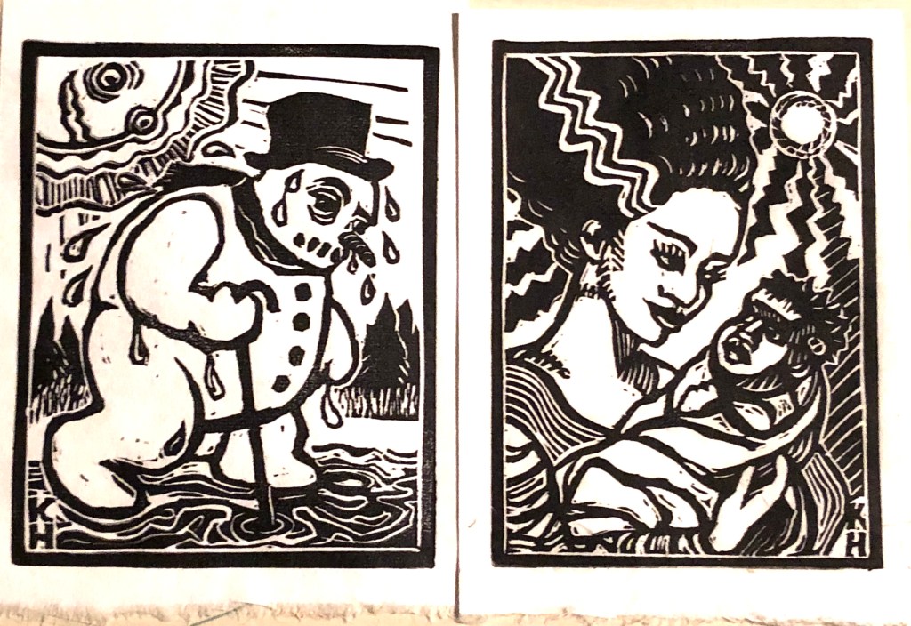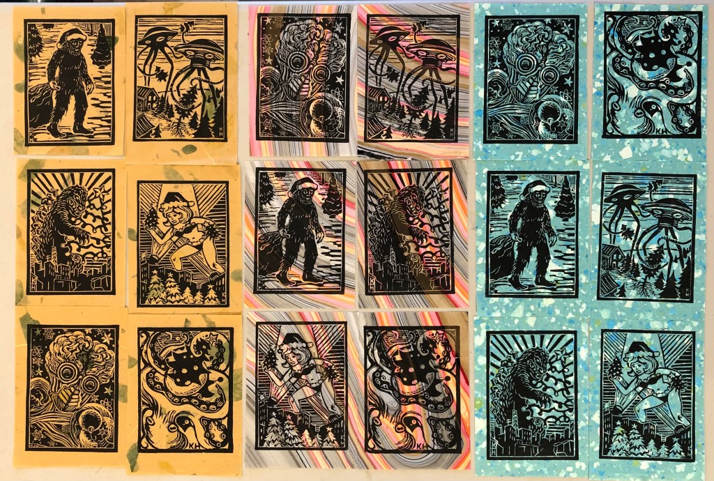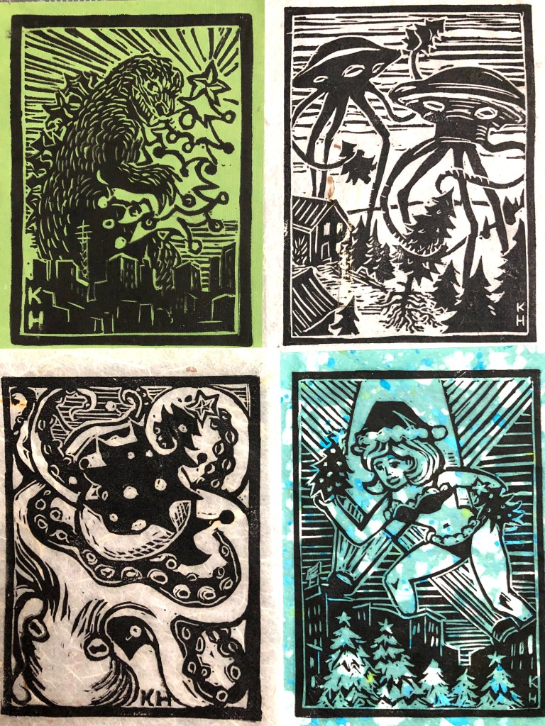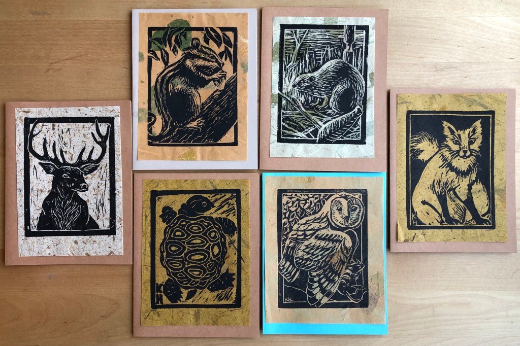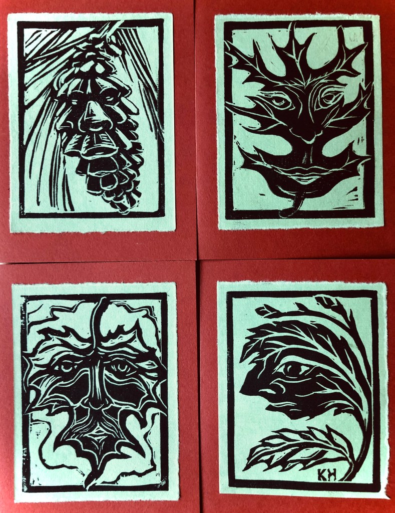 Every year since 2011, I have made block prints as a meaningful way to connect with friends, and to promote holiday sales. The block print is a simple means to make a small piece of art which, though one of many, is a unique object original to the recipient’s space and time. It can be as ephemeral as a simple note, or as enduring as a framed print.